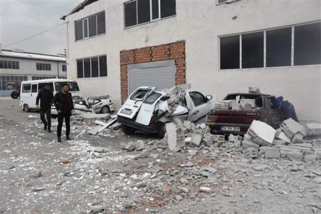 ÇATILAR UÇTU, ARAÇLARIN ÜZERİNE DUVAR PARÇALARI DÜŞTÜ