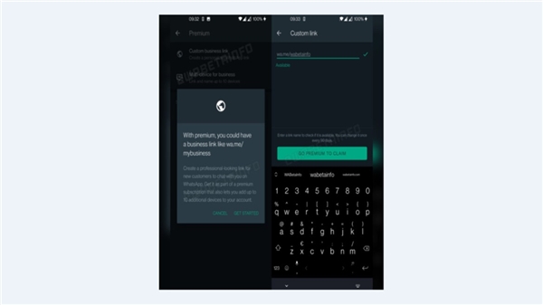 İşletmeler için ön plana çıkacak uygulama; Android, iOS ve masaüstü sürümleri için WhatsApp Business Beta'da geliştiriliyor. WhatsApp Premium aynı zamanda ek olarak işletme hesaplarının özel bir iş bağlantısı oluşturmasına izin verecek. Bu bağlantı sayesinde müşteriler, hatırlaması kolay bir adres sayesinde işletmelerle iletişim kuracak. Yenilik sadece WhatsApp Business sürümünde isteğe bağlı olarak kullanılacak yani standart WhatsApp hesaplarında yer almayacak.