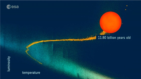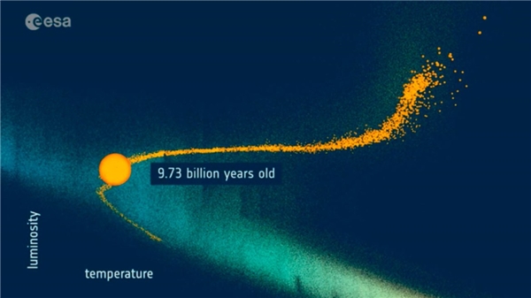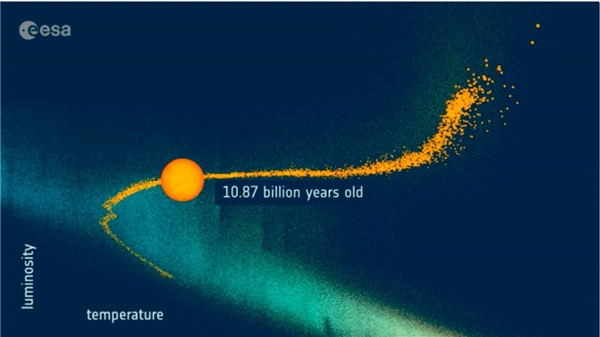 Güneş'in ömrünü bir görsel ile açıklayan Avrupa Uzay Ajansı (ESA), Samanyolu içerisindeki yıldızları inceleyerek bu verileri bizlere sunuyor. Yıldızların sıcaklıkları ve yarıçapları incelenerek Güneş için de bir yaşam döngüsü ortaya konuyor.