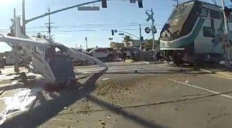 ABD'de raylara zorunlu iniş yapan uçağa tren çarptı! Pilot saniyelerle hayatta kalmayı başardı