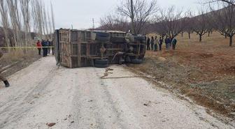 Aşırı hız nedeniyle virajı alamayan kamyon devrildi: 1 ölü, 1 yaralı
