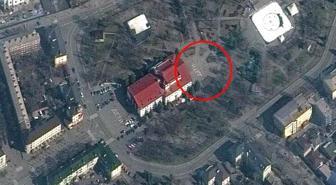 Rus ordusunun bombaladığı tiyatro binasında yürek yakan detay! Bahçesine Rusça "çocuk" yazılmış