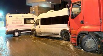 Buzlanma nedeniyle kontrolden çıkan tır, minibüs ve ambulansa çarptı