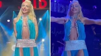 Gülşen sahnede yine çok iddialı! Elbisesinin önü ayrı arkası ayrı olay