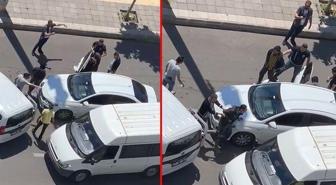 Caddeyi boks ringine çevirdiler! Taksicilerin tekmeli yumruklu müşteri kavgası kamerada