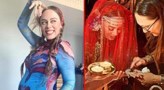 6 aylık hamile Demet Evgar, kına gecesi yapıp göbek attı