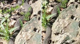 3 metrelik dev yılan paniği! Korkuya kapılan vatandaş o anları kayda aldı