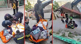 İzmit'te 200 kiloluk obez hasta evine vinçle çıkarıldı