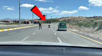 Polisin bir kaplumbağanın yolun karşısına geçmesine yardım etmesi kameraya yansıdı