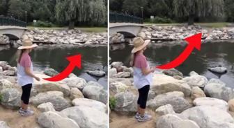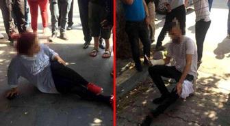 Mini etekli kadının videosunu çeken şahıs sert kayaya çarptı! Önce tükürdü sonra dövdü