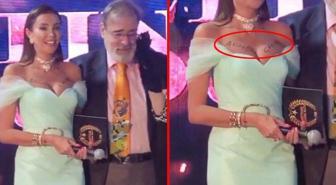 Ödül töreninde ilginç anlar! Özge Ulusoy'un göğsüne, sözleriyle gündem olan eski vekil Ahmet Çakar'ın adını yazdılar