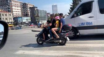 Trafikte tehlikeli yolculuk! Hem kendi hem de çocukların canını dakikalarca hiçe saydı