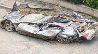 Ankara'da sel nedeniyle istinat duvarının altında kalan otomobil kağıt gibi ezildi