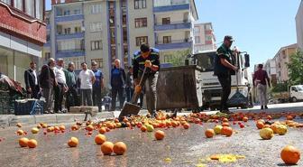 Kaldırım işgali uyarısına sinirlenen manav, kilolarca meyve ve sebzeyi gözünü kırpmadan yola döktü