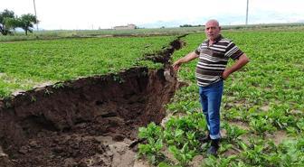 Kayseri'de şiddetli yağmur, ekili arazide 2,5 kilometre yarık oluşturdu