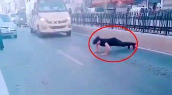 TikTok aşkı pes dedirtti! Akan trafiği durdurup yol ortasında şınav çekti