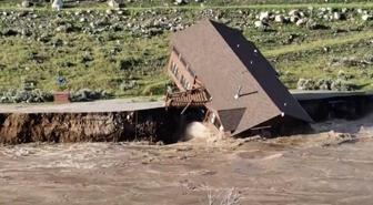 Aşırı yağışa dayanamayan ev nehre sürüklendi! Film sahnelerini aratmayan anlar kamerada