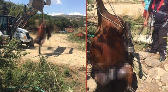 Domuz saldırısına uğrayan "yarış atı" 15 metrelik çukura düşerek telef oldu