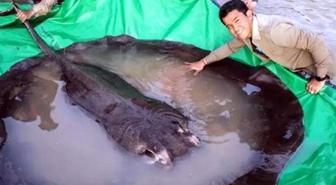 Kamboçya'da 300 kilogram ağırlığında tatlı su balığı yakalandı