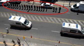 Şehitlerin naaşlarının geçişi sırasında caddedeki polisler ve vatandaşlar selama durdu