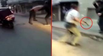 Öfkesine hakim olamadı, uçarak kafa attı! Hırsını alamayan sürücü, motorcuyu bir de silah çekti