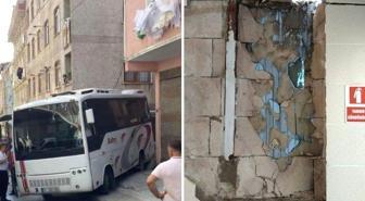 Freni boşalan midibüs duvara çarptı, oyun oynayan çocuk son anda kurtuldu