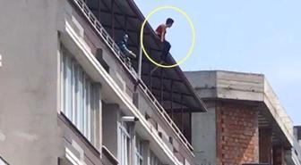 Binanın çatısına çıkan kadını ölümden polis çekip aldı