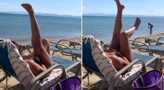 Yattığı yerde bile rahat durmadı! 58'lik Hülya, şezlongda şekilden şekle girdi