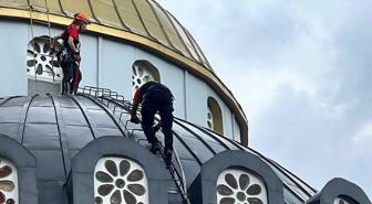 Mahalleli fark etti, ekipler harekete geçti! Cami kubbesindeki yuvadan düşen yavru leyleğe müthiş kurtarma