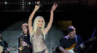 Gülşen, sahneye göğüs uçlarını bantla kapattığı transparan elbiseyle çıktı