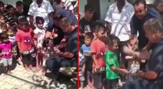 Sıraya dizdiği çocuklara önce harçlık verdi, sonra döverek sevdi