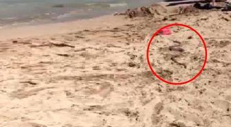 Plajda kumların arasından çıkan yılan panik yarattı, güneşlenen Kandıralılar yerinden oldu