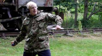 Askeri kampı ziyaret eden İngiltere Başbakanı Boris Johnson, el bombası fırlatıp Rusya'ya mesaj gönderdi