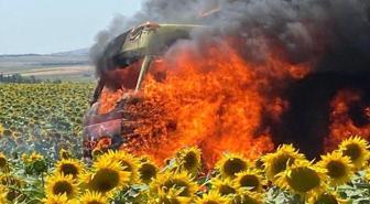 Tam da bu yoklukta olacak iş mi? Buğday yüklü koca kamyon alev alev yandı