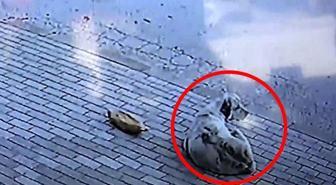 Yavrularıyla duran sokak kedisine saldıran ev köpeği bin pişman oldu