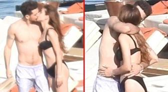 Tatilde aşka gelen Deniz Baysal, eşini öpücüklere boğdu