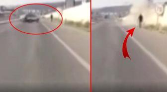 Kontrolden çıkan araç takla attı! Görüntülerde ölümden kıl payı kurtulan adamın vurdumduymazlığı dikkat çekti