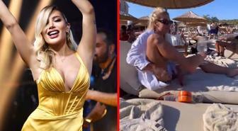 Çılgınlıkta sınır tanımayan İrem Derici, ayak parmaklarının arasına sıkıştırdığı kadehten içki içti