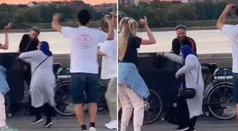 Sokakta eğlenen Danimarkalı gençlerin arasına dalan teyze, dansıyla ağızları açık bıraktı