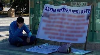 Kendisini terk eden eşinden, kent meydanında pankart açıp özür diledi
