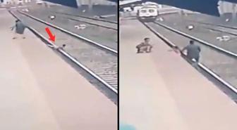 Demiryolu çalışanı, raylara düşen çocuğu trenin altında kalmaktan son anda kurtardı