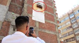 Gören telefona sarılıyor! Bina duvarında asılı kalan dolap ilgi odağı oldu