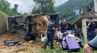 Rize'de turistleri taşıyan otobüs devrildi: 3'ü ağır 24 yaralı