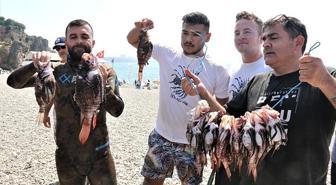Zehirli aslan balığını yakalamak için yarıştılar, tuttukları balıkları ise ızgarada pişirip yediler