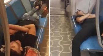İstanbul'da metroda tepki çeken görüntü! Kimseye aldırış etmeden uyudular