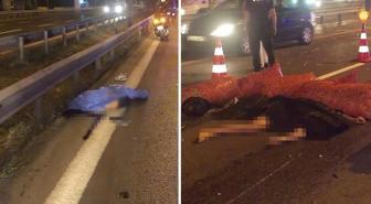 Aşırı hızlı motosiklet, kamyonete çarpıp alev aldı! 2 kişi feci şekilde can verdi