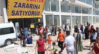 Ucuza halı satıldığını duyan vatandaşlar, mağaza önünde izdiham oluşturdu