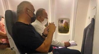 Bakan Çavuşoğlu ve Bakan Ersoy, tıka basa dolu iç hatlar uçağında yan yana yolculuk yaptı