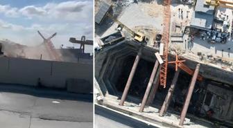 İstanbul'da metro çalışması sırasında vincin devrilme anı kamerada: Aman Yarabbi yıkıldı