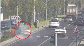 Kontrolden çıkan araç, yolun karşısına geçmeye çalışan kadınlara böyle çarptı